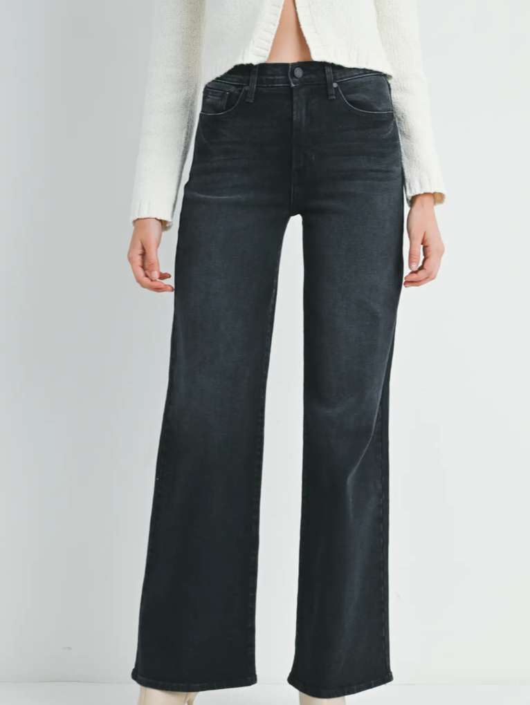 Meet your new go-to jean: sleek, modern, and endlessly flattering. Our Palazzo Jean in black features a high rise, smooth stretch denim, and a wide-leg silhouette that creates an effortless, elongated look. Easy to dress up or down, this pair is perfect for everyday wear, nights out, and everything in between.